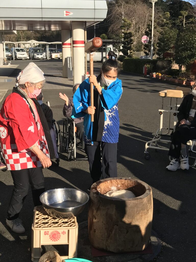 技能実習生は初めてのお餅つきに大喜び!
