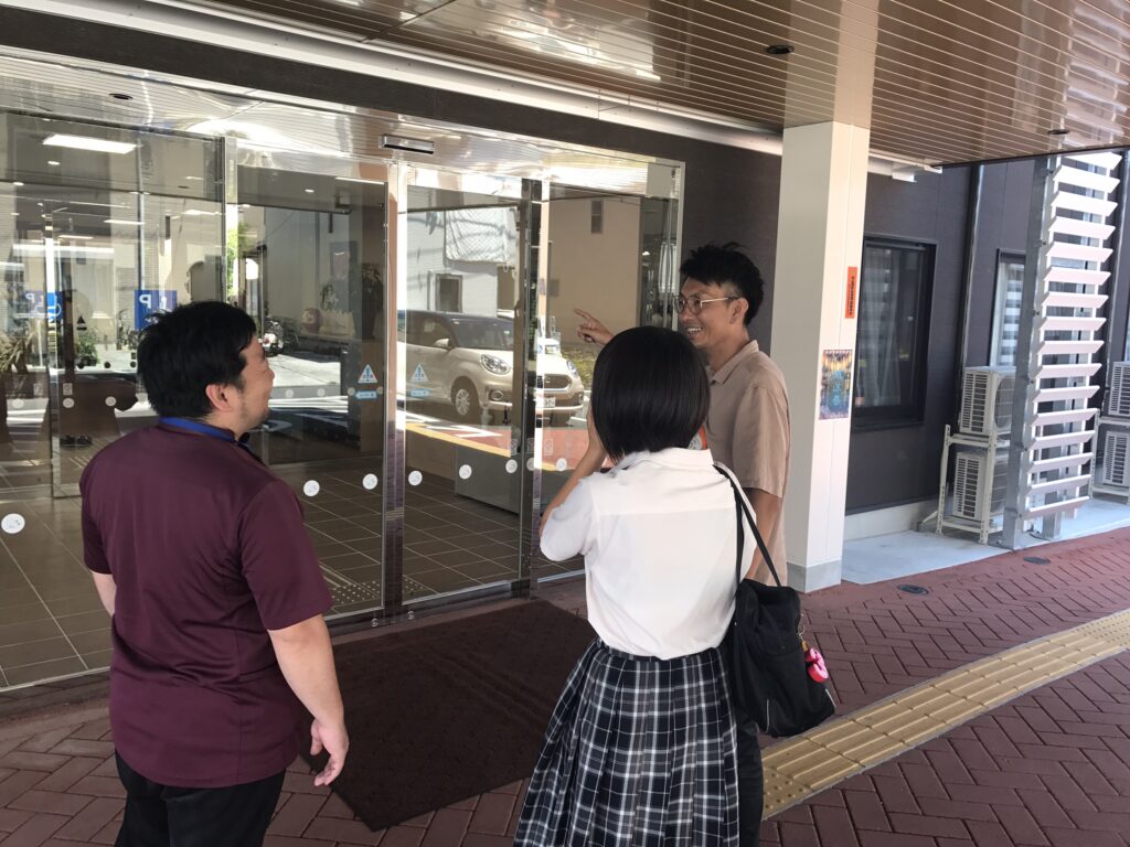東八幡では社員寮が徒歩5分のところにあり、寮も合わせて見学していただきます。