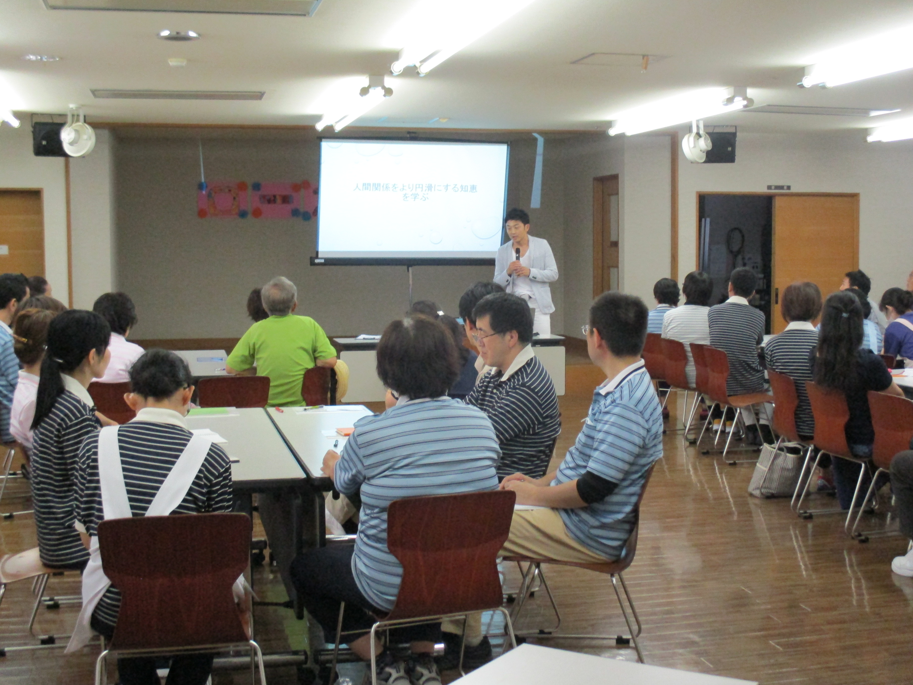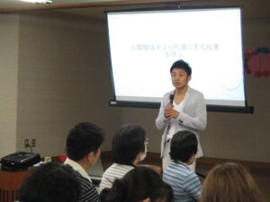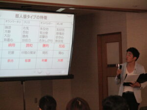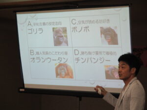 今回の研修は、コミュニケーションを課題とした~人間関係をより円滑にする知恵を学ぶ~というタイトルのもと、株式会社玄の水上人材開発部部長を講師に迎え類人猿分類を用いた職員間のコミュニケーションについて楽しくお話頂きました。