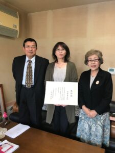 平塚市社会福祉協議会会長をはじめとする事務局の方が当法人にお越しになり、直接表彰状を授与していただきました!
