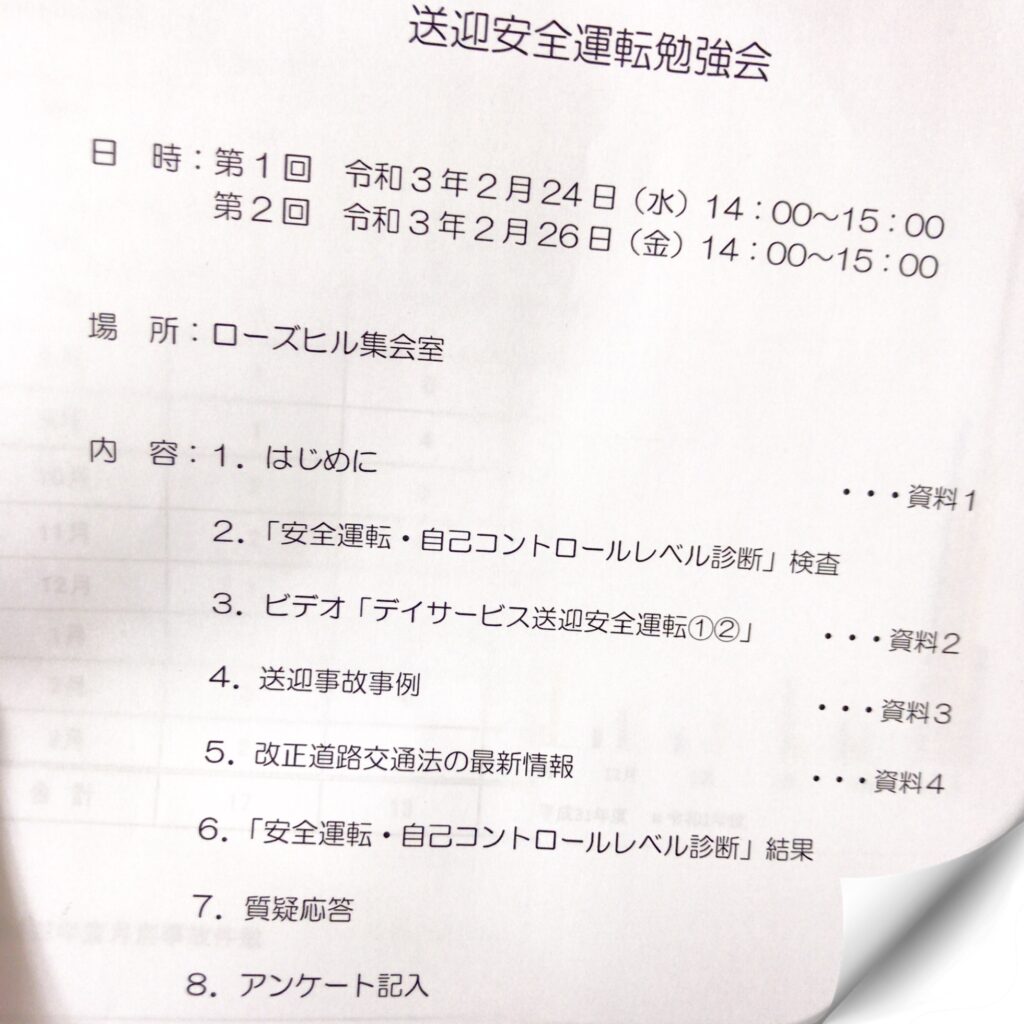 去る2月24日、26日の2日間にわたり、事務局主催による送迎安全運転勉強会が開催されました。